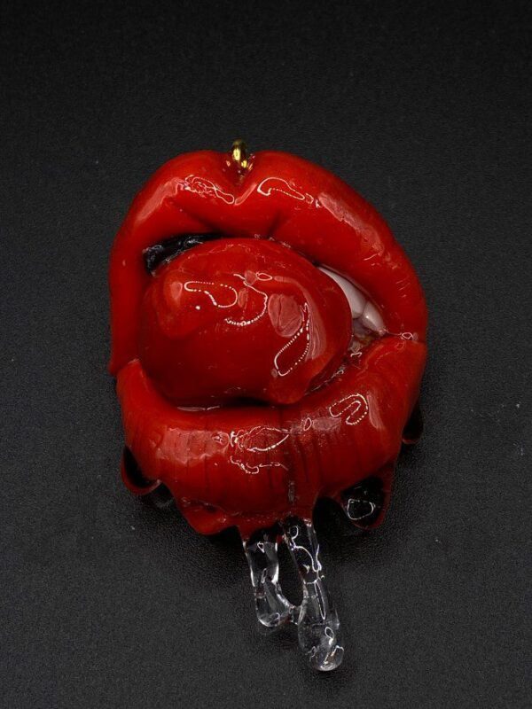 This piece of work is an original design and is purely handmade. It comes with a chain and can be worn either as a necklace or as a brooch.
